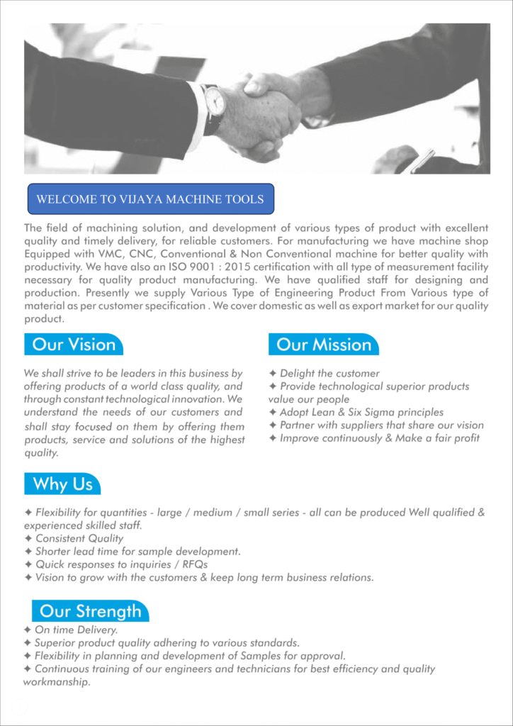 At Vijaya Machine Tools, quality begins right at the source. Every purchased raw material undergoes chemical and physical testing as per the defined control plan. Materials such as bright bars, profiles, forgings, castings, and other assembly spares are checked against strict standards. In addition, dimensional inspections are carried out to ensure that only the highest-quality inputs are used in our manufacturing process.