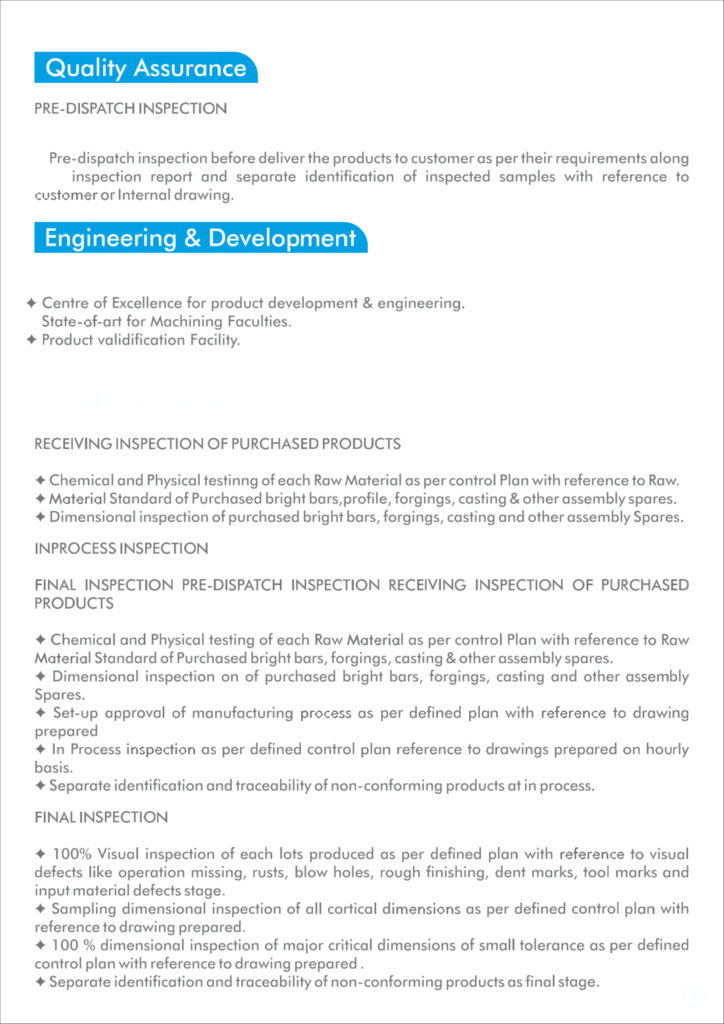We follow strict quality control measures at every stage of production. From raw material inspection to final delivery, every component undergoes precise testing to ensure accuracy, durability, and international standards compliance.